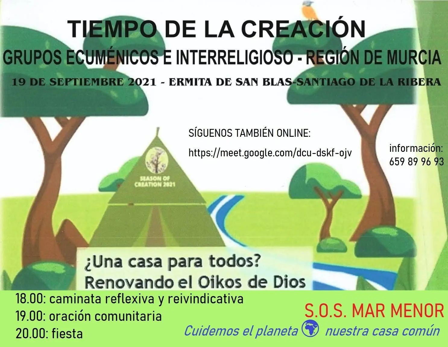 Los Grupos Ecuménicos e Interreligiosos de la Región de Murcia (GEIRM), en los que colabora la Delegación de Relaciones Interconfesionales, se unen a la iniciativa Tiempo de la Creación, un movimiento ecológico encabezado por el Comité Directivo Ecuménico Internacional al que pertenecen cristianos de distintas confesiones de todo el mundo. El objetivo principal de la plataforma es proporcionar recursos que permitan a los cristianos responder a la llamada de la fe, cada uno desde su propia denominación, durante un tiempo de reflexión y acción.