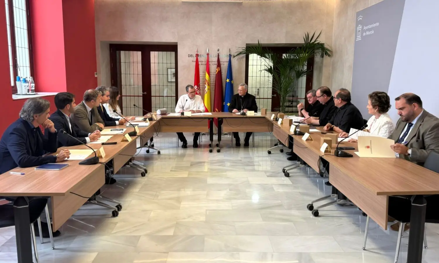 El comité organizador del centenario se ha reunido esta mañana con el alcalde de Murcia, José Ballesta, para presentarle los grandes actos previstos para este centenario. En la reunión estaban también la vicealcaldesa y concejal de Fomento y Patrimonio, Rebeca Pérez; el edil de Pedanías y Vertebración Territorial, Marco Antonio Fernández; el concejal de Turismo, Comercio y Consumo, Jesús Pacheco; y el concejal de cultura e identidad, Diego Avilés; y por parte de Cabildo acudía también el canónigo Maximiliano Caballero.