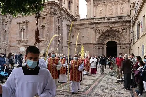 La procesión de las palmas, que recuerda la entrada de Jesús de Nazaret en Jerusalén, volvió a recuperar su esplendor en la celebración del Domingo de Ramos, tras dos años sin salir a la calle a causa de las restricciones por la pandemia. El obispo de Cartagena, Mons. José Manuel Lorca Planes, bendijo las ramas de olivo y palmas en la plaza de la Cruz de Murcia. Desde allí partió la procesión hasta la plaza del Cardenal Belluga para entrar a la catedral por la puerta de San José.