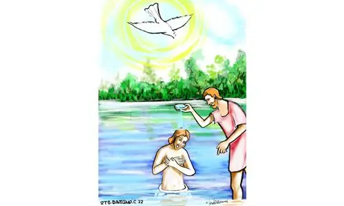 Se destaca, como una nueva creación, la bajada del Espíritu Santo sobre Él y la voz del cielo. Según la tradición del pueblo de Dios en el Antiguo Testamento, la comunicación del Espíritu significa la inspiración profética. Jesús es ungido para esta misión y nos da ejemplo de humildad, de sencillez; acude a la predicación de Juan con todos, entre todos, sin señalarse en nada y sin tener pecado, pero se solidariza con nosotros y se pone ante Dios como garante por nuestros propios pecados; Él lleva sobre sus hombros los pecados de la humanidad. El regalo de Dios está en que en nuestro bautismo nos asimilamos sacramentalmente a Jesús, descendemos, como Jesús al agua, «para subir con Él, renacer del agua y del Espíritu para convertirse, en el Hijo, en hijo amado del Padre y vivir una nueva vida» (cf. CIC, 537). Así, pues, nuestra vida cristiana exige corazón sencillo y humilde, se trata de escuchar la Palabra de Dios, como Jesús, y ser fieles a ella todos los días. Pero nos debemos vigilar, porque cada día algo tiene que morir dentro de nosotros y algo tiene que nacer. Cada día debemos ser menos egoístas, sensuales, vanidosos… y ser más como Jesús. Nuestro Señor no nos engaña cuando nos habla que para ser como Él hay que aprender a no despreciar la cruz, que la cruz «es el verdadero rostro de Cristo», también es el verdadero rostro del cristiano. Por el bautismo, Dios nos invita a cambiar, a seguir al Crucificado, a morir al pecado y a renacer a los valores cristianos.
